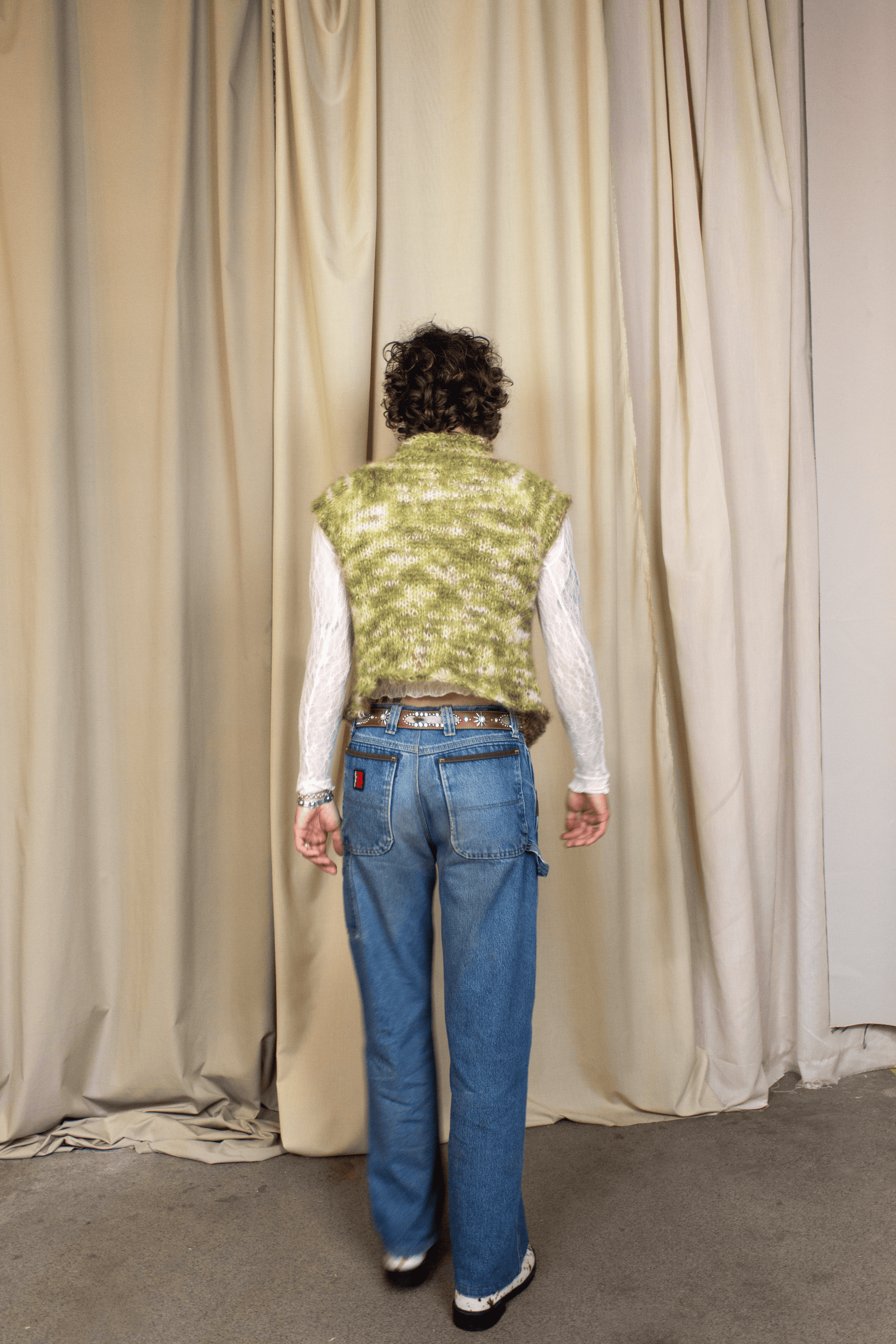 Mohair T-shirt er håndlavet af håndfarvet 73% kid mohair, 13 % merinould og 9% nylon.