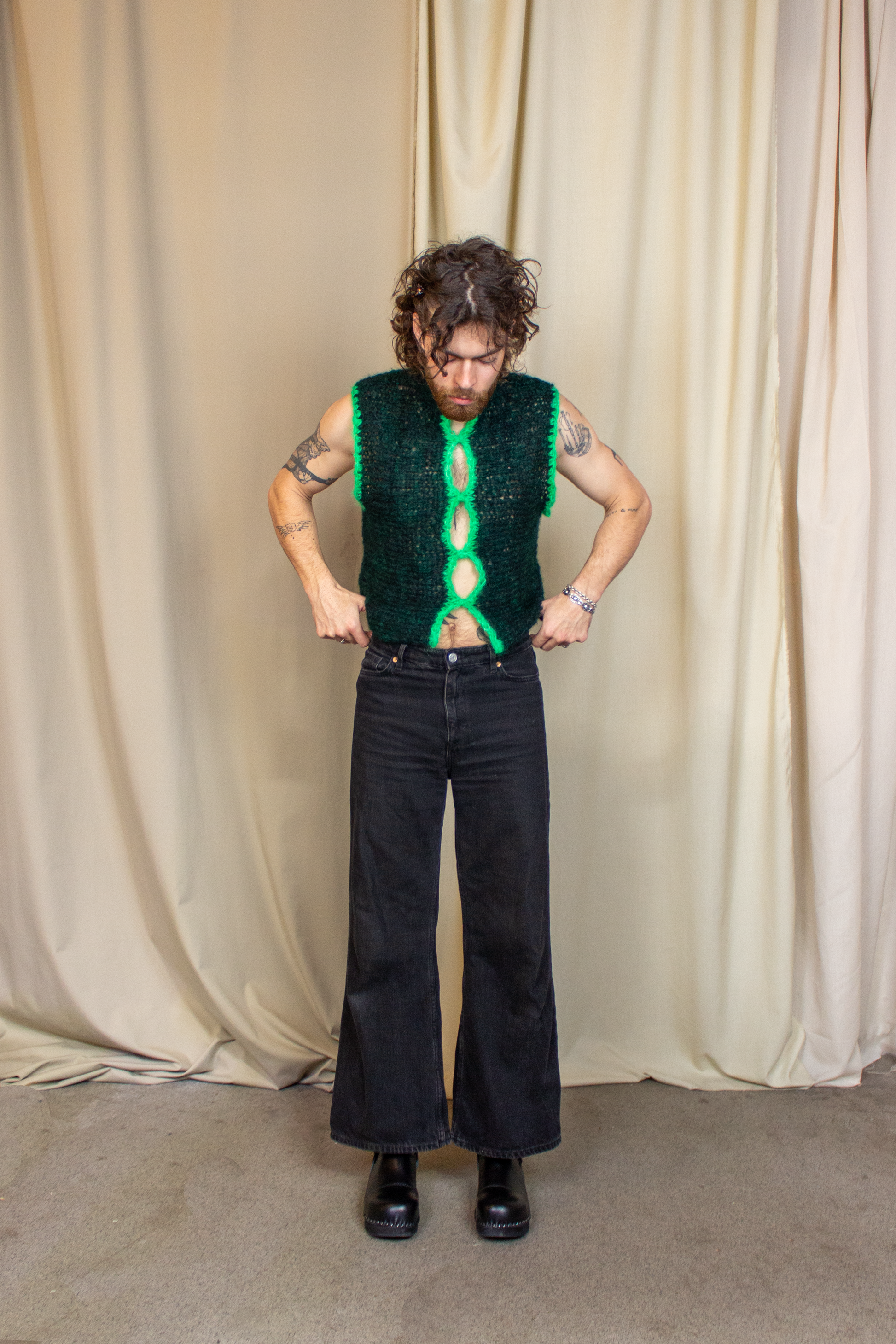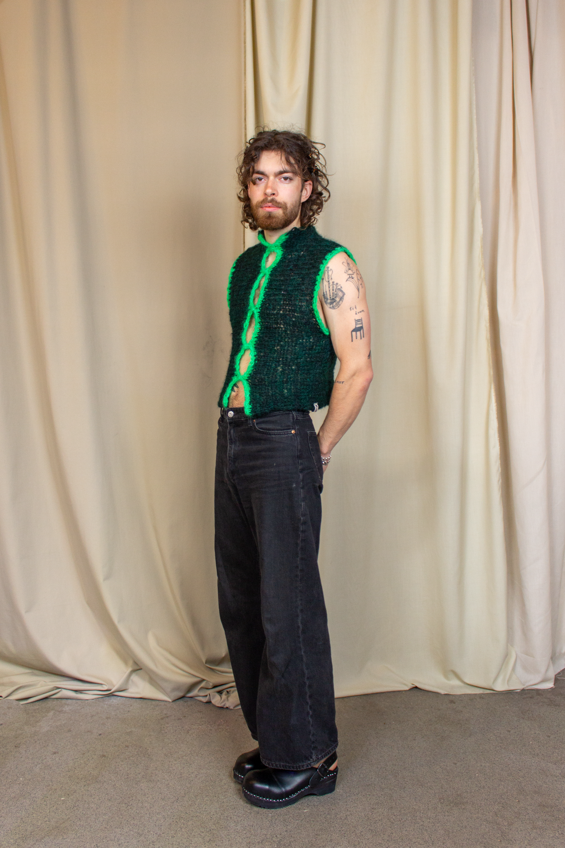 Spine Top #2 er håndlavet af 78 % kid mohair, 13 % uld og 9 % nylon.